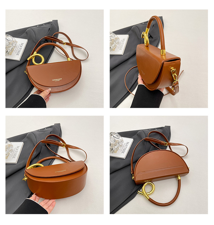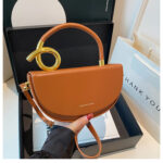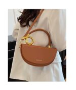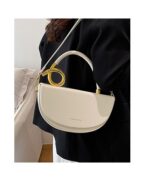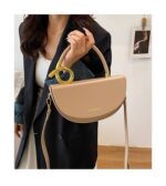 Step into elegance with the Aurora Half-Moon Handbag, a stylish ladies bag in Bangladesh, a statement piece designed for the modern woman. Crafted from premium PU leather, this bag combines durability with a soft, luxurious finish. Its unique half-moon design paired with a golden spiral handle makes it a true fashion standout, while the detachable strap allows you to carry it as a chic handbag or a crossbody for versatile styling.