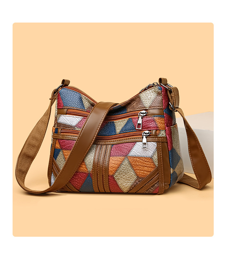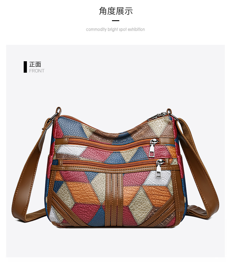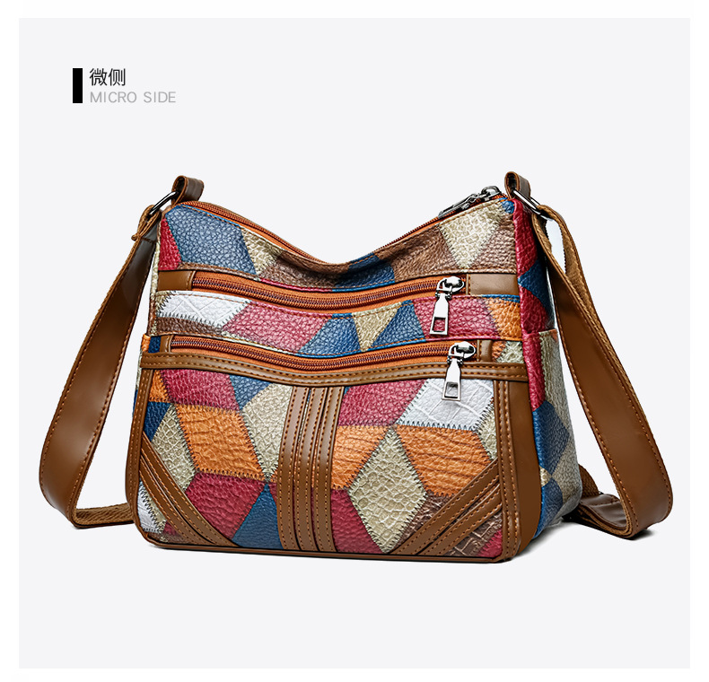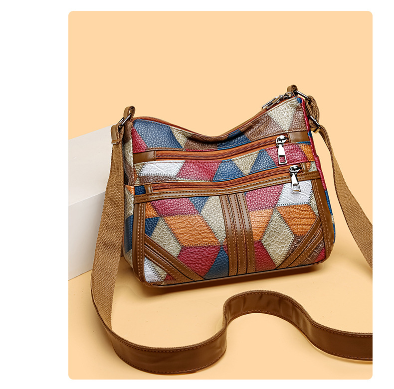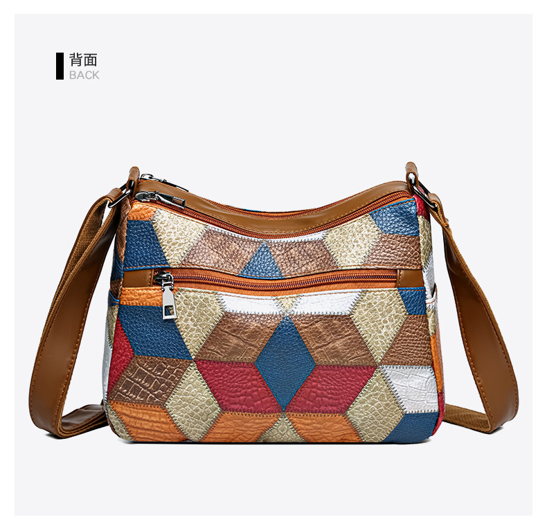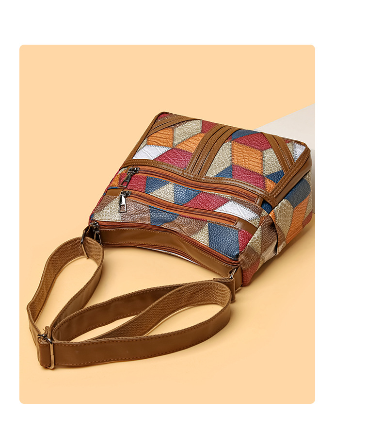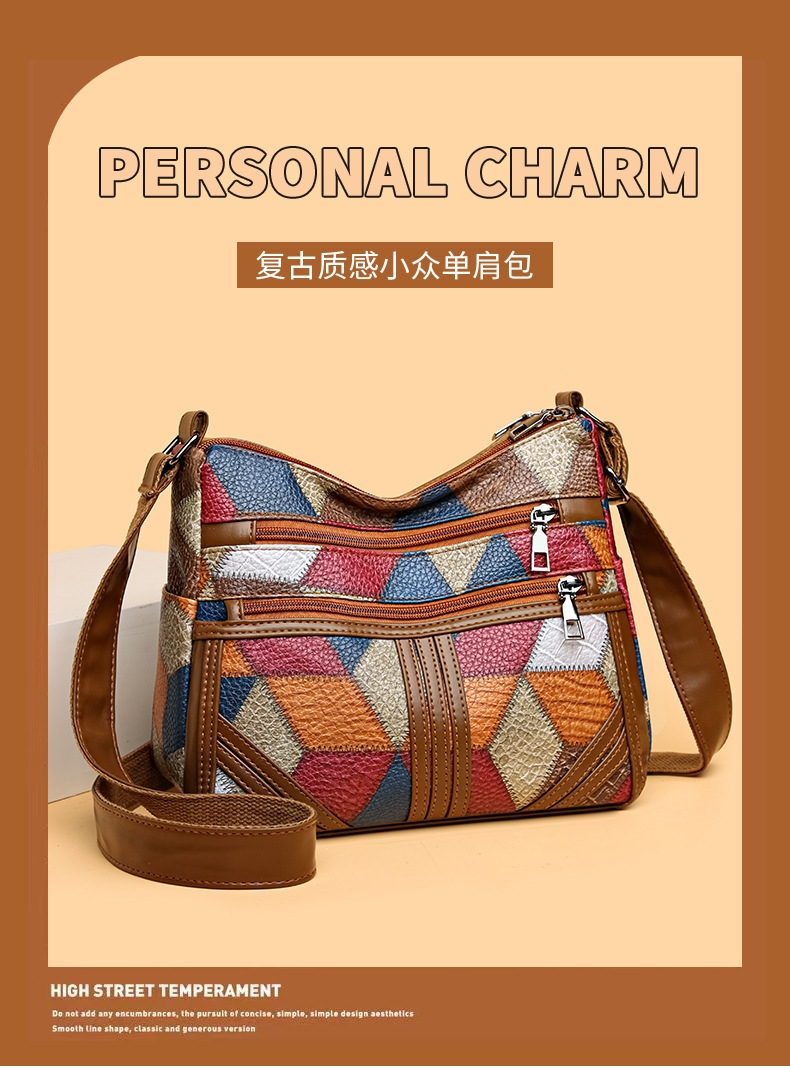 Its medium square structure makes it spacious enough for daily essentials, while the secure zipper closure and inner pocket keep belongings safe. The stylish sewing-thread accents highlight its retro vibe, making it versatile for both casual outings and everyday use.
