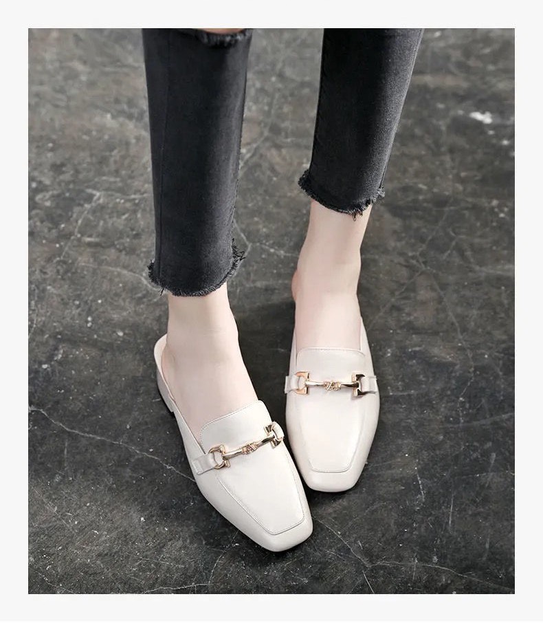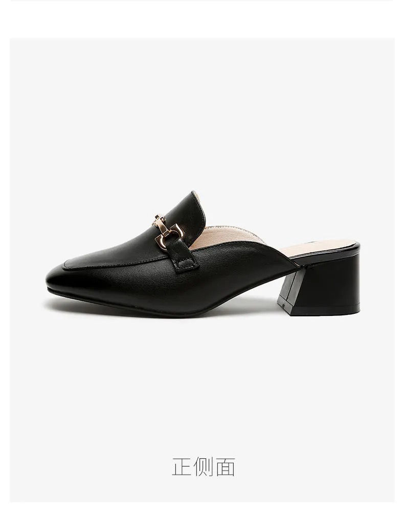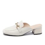 Comfortable slip-on women’s lazy shoes with round toe, low square heel, and soft microfiber & calfskin upper. Ideal for daily casual wear and effortless style.